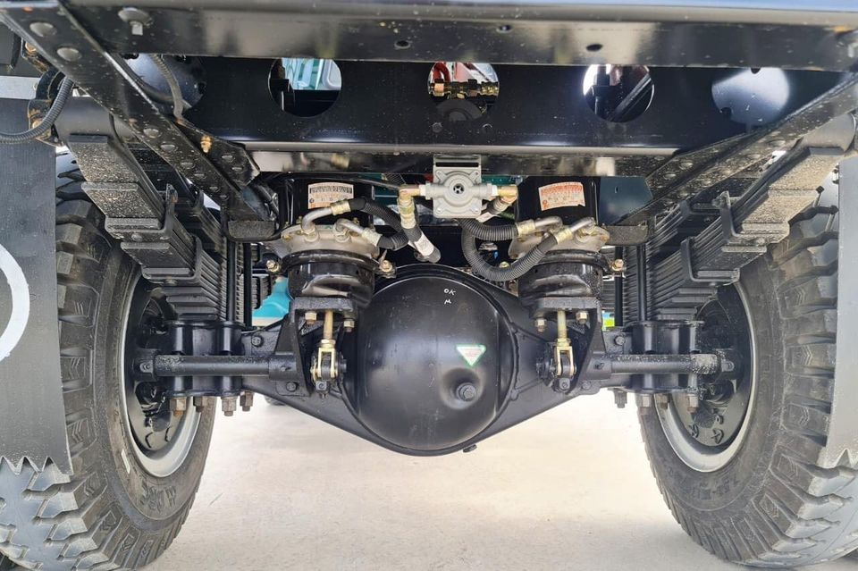 Lốp xe Trước/sau: 7.50-16/DUAL 7.50-16. Hệ thống phanh chính: Phanh tang trống, thủy lực hai dòng, trợ lực chân không. Phanh đỗ: Tang trống, cơ khí, tác động trục thứ cấp của hộp số. Hệ thống phanh phụ: Phanh khí xả động cơ.