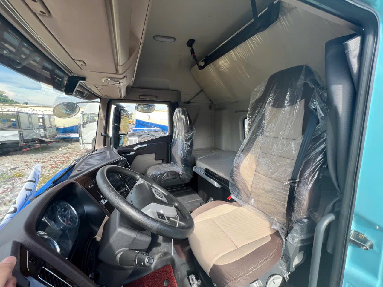| Cabin | – Cabin JH6 Full option tiêu chuẩn Faw sang trọng, có 2 giường nằm, ghế hơi cho người lái, điều hòa 2 chiều, radio, kinh điện…Ngoài ra loại cabin FAW JH6 này còn có thêm 1 số đặc điểm khác nổi bật hơn hẳn so với tất cả các dòng xe đầu kéo hàng đầu hiện có ở Việt Nam như: Cabin Xe đầu kéo Faw JH6 sử dụng phiên bản thiết kế mới nhất của FAW, cấu hình rất trẻ trung và bắt mắt. Vô lăng được tích hợp các nút bấm đa chức năng, điều khiển trung tâm, kết nối với điện thoại di động thông qua Bluetooth của xe, các nút bấm trên vô lăng có thể được sử dụng để nghe nhạc, gọi điện và các chức năng khác, và giúp cho người lái thoải mái hơn khi lái xe. |