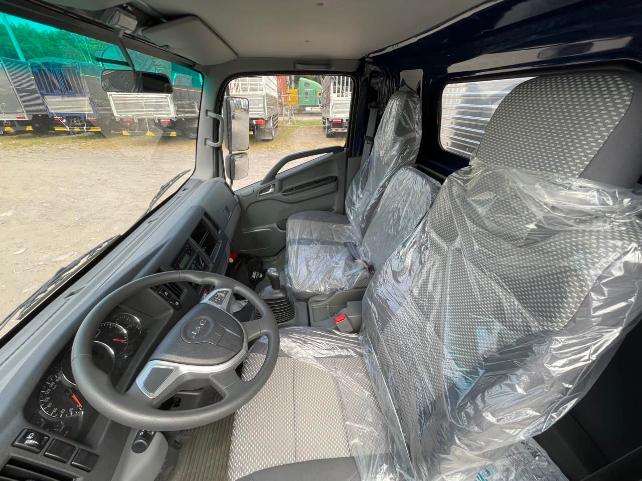 Xe Tải Jac 6.5 tấn thùng 5.2m Cabin đầu vuông rộng hơn hẳn phiên bản trước đó. Lối lên xuống cả bên tài và bên phụ đều thông thoáng hơn, khoảng trống để chân giữa hàng ghế và taplo rộng hơn, mặt ghế ngồi cho 3 người cả tài xế bản lớn, lật ngả thoải mái. Xe tải Jac N650 kiểu vô lăng 4 chấu tích hợp các nút điều chỉnh radio, nghe nhạc… khu vực làm việc của đôi chân tài xế thoải mái, không bị gò bó giúp làm việc không mệt mỏi và rất an toàn.