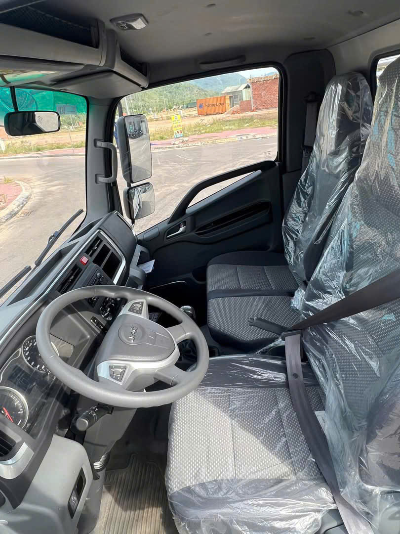 N250S E5 vẫn giữ thiết kế cabin vuông rộng rãi với 3 ghế ngồi, chất liệu ghế nỉ êm ái thỏa mái, cabin lật dễ vệ sinh và sửa chữa.