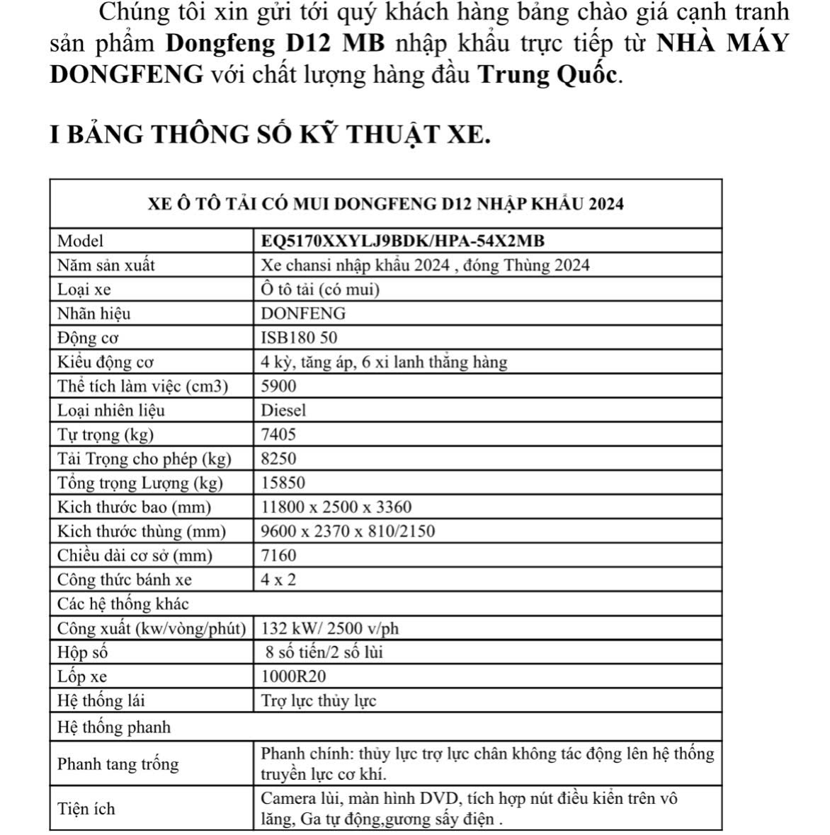 Với nhiều ưu điểm nổi bật xe tải Dongfeng D12 là lựa chọn hoàn hảo vận chuyển hàng hóa đường dài. Vì vậy, nếu như có nhu cầu, quý chủ đầu tư hãy liên hệ ngay với chúng tôi theo số hotline để được tư vấn báo giá chi tiết nhé!